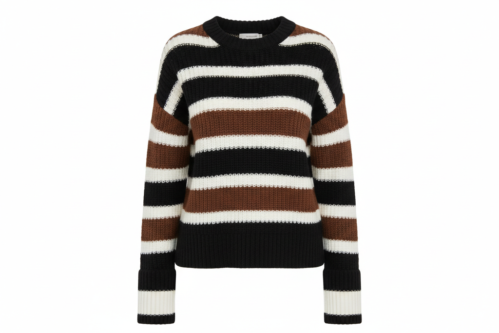 Get cozy in style with this ZARA knitted sweater—your new favourite layering piece! Wrapped in premium warmth, this beauty rocks a chic striped design in black, brown, and white that works with basically everything in your closet. High-quality construction means it'll stick around for seasons to come, keeping you snug without the bulk. Whether you're coffee-shop hopping or settling in for a movie night, this sweater is the comfort upgrade you didn't know you needed.